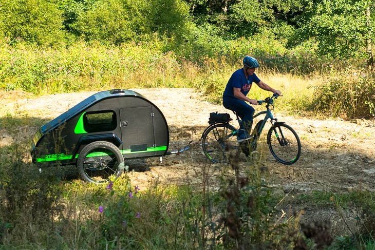 Mody fietscaravan is mini-teardrop voor achter de e-bike