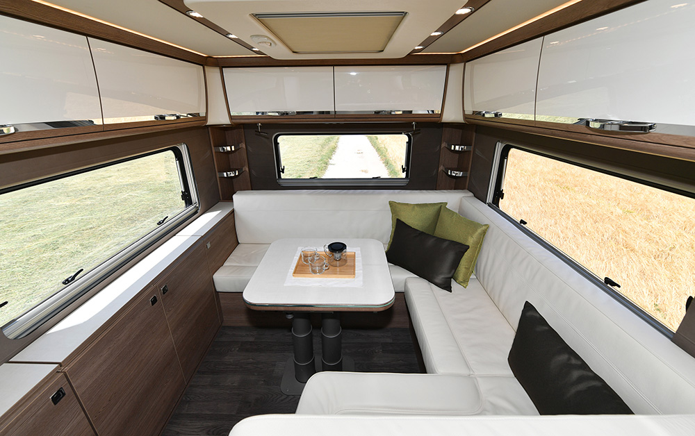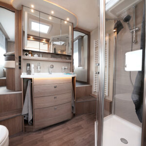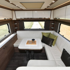 Natuurlijk is de Grand Empire 120 geschikt om het hele jaar te gebruiken. De isolatie is uitstekend, onder meer dankzij de ramen van echt glas, het verstevigde dak en de verstevigde buitenwanden. In de hele camper zorgen dakairco’s desgewenst voor verkoeling. In koudere maanden is het behaaglijk dankzij de vloerverwarming, die zelfs doorloopt tot in de badkamer.