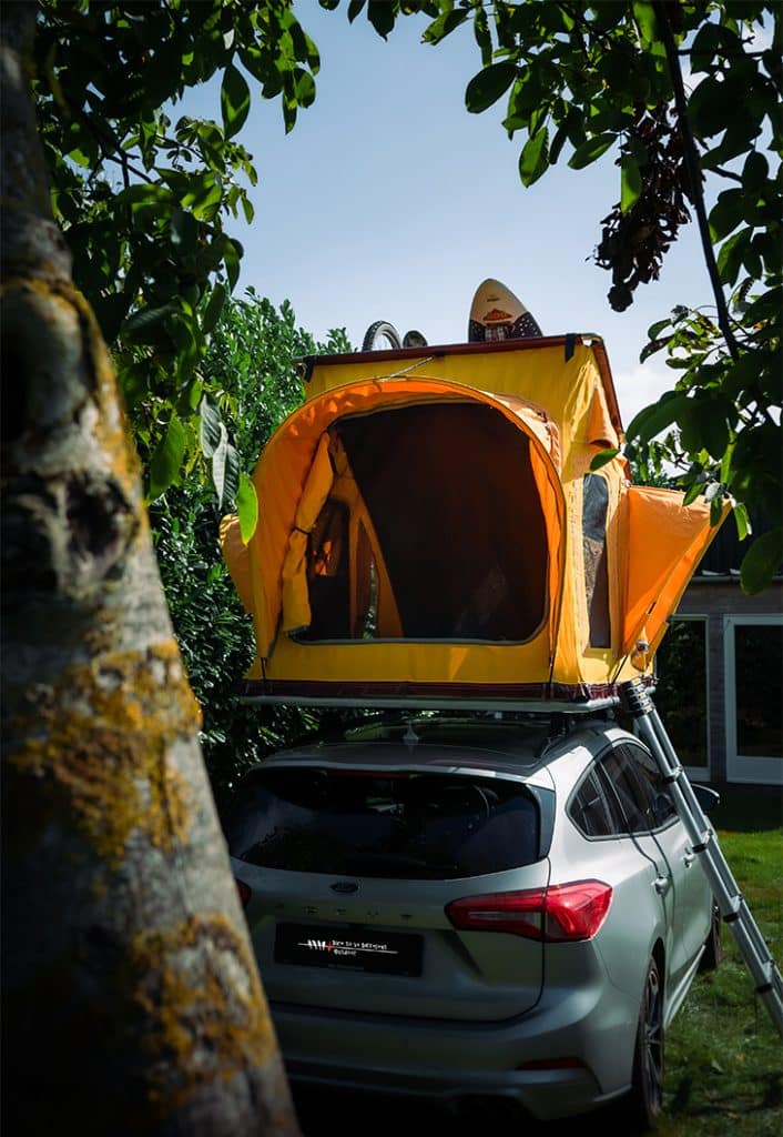 De Aniewhere-daktent is volgens Roland van Dare to be Different ook uniek vanwege het royale bed, dat 2,10 x 1,38 meter groot is. “Dankzij de afmetingen van de tent kunnen we nu ook de mogelijkheid bieden om het bed te upgraden met het Froli-schotelverensysteem. In andere tenten is daar vaak geen ruimte voor.”