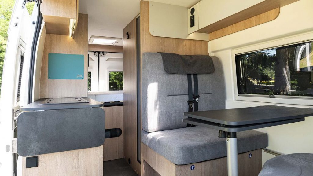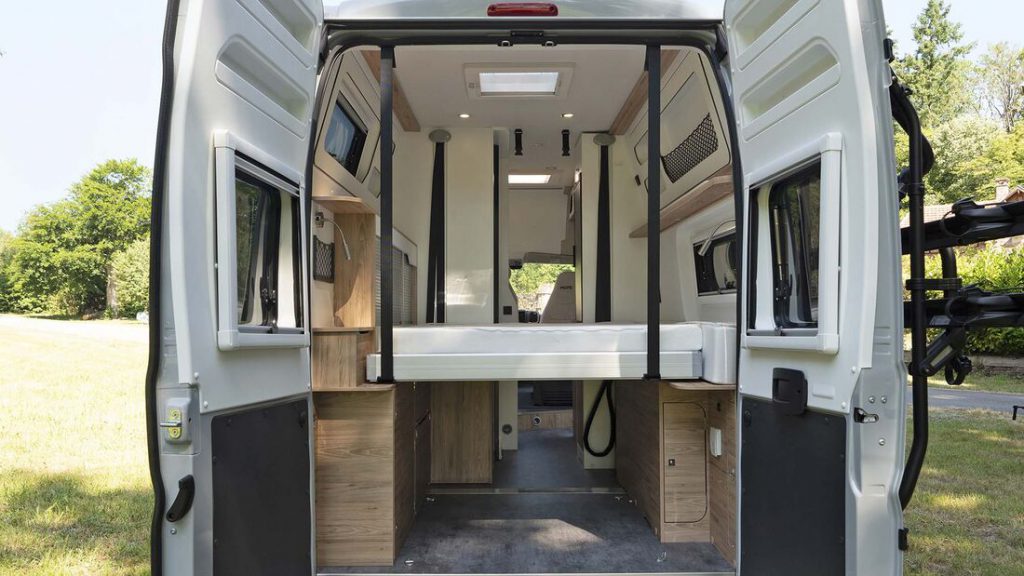 De tweede nieuweling bij Pilote 2022 is een buscamper. En wel de V 633 M, die de langste en hoogste Fiat-carrosserie gebruikt. Achterin een hefbed in lengterichting. Dat kan omhoog tot tegen het dak. Daardoor ontstaat er een behoorlijk grote bagageruimte onder het bed. Hangt het bed halfhoog, dan kun je het blijven gebruiken en passen toch de fietsen eronder. De buscampers van Pilote zijn er als standaard en premium-variant. Prijzen beginnen rond de 60.000 euro.