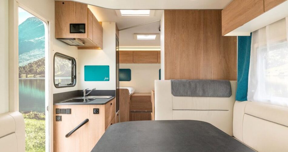Vervolgens twee indelingen met een lengte van 7 meter. Het vlaggenschip is de 7,40 meter lange Joa 75. Deze is zowel met enkele bedden als met een queensbed leverbaar. Alle modellen hebben een grote koelkast met een inhoud van 133 liter. Ook een badkamer met draaibare wand hebben alle Joa’s gemeen. Een vijfde variant – zes meter lang met Frans bed – zit eraan te komen. Voor meer informatie over dit nieuwe instapmerk zul je nog even moeten wachten tot de Caravan Salon.