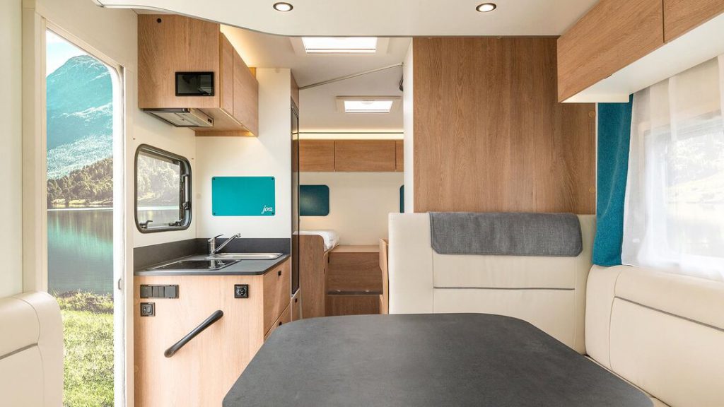Joa – het woord betekent vreugde in het Bretons. Het nieuwe instapmerk heeft buscampers en halfintegralen. Twee buscampers: met het tweepersoonsbed dwars achterin. En met enkele bedden in de lengterichting. Respectievelijk 5,99 en 6,36 meter lang. De korte versie van 5,40 meter volgt binnenkort. Bij de halfintegralen is er keus uit vier indelingen. De kortste – de Joa 60 F – is 6 meter lang en heeft een Frans bed.