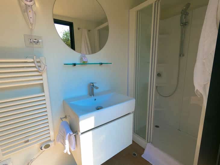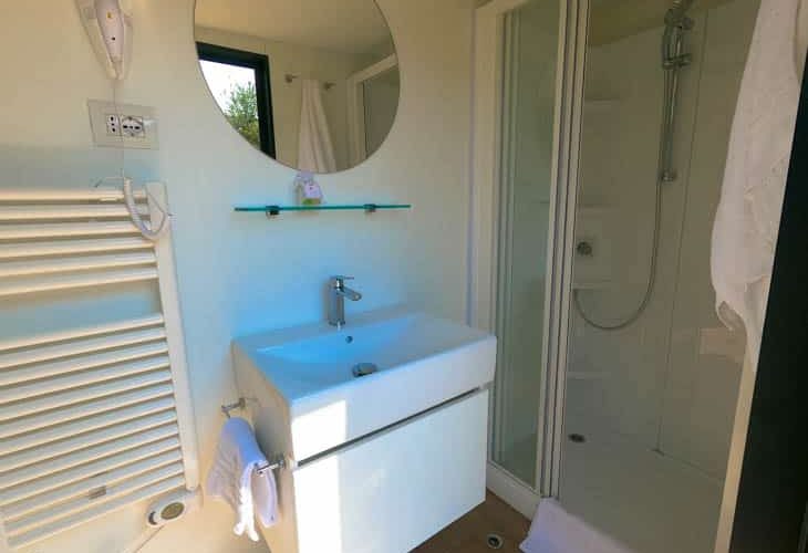 Het corona closet is een ruim bemeten badkamerunit. Het design is strak, de gebruikte materialen en kleuren warm. Behalve het eigen toilet heb je een ruime douchegelegenheid. Ook in deze ruimte een wastafel en een föhn. Een glamping-innovatie die helemaal past in deze tijd. Vanaf nu te boeken op de Papillon Country Resort camping. Deze is afgelopen najaar overgenomen door de Vacanze col Cuore-groep. Sindsdien is er een kwaliteitsslag geslagen. Zo kwam er onder andere een safaritentenzone en kregen het restaurant en het kindervermaak een upgrade.