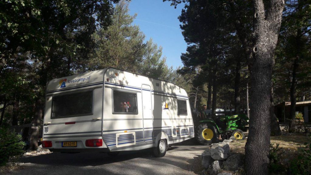RCN Les Collines de Castellane is een terrassencamping. Wij stonden vrij bovenaan en hoefden niet ver te lopen voor sanitairgebouw, receptie, winkeltje en zwembad. Sta je beneden? Dan kom je met gespierde kuiten thuis. Serieus, van beneden naar boven is het een flinke klim. Soms hadden zelfs auto’s moeite de caravan naar boven te sleuren. Wij lieten het zover niet komen: voor vier euro werd ons reispaleis met de tractor omhoog gesleept.