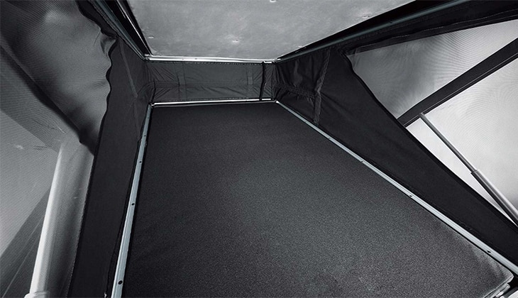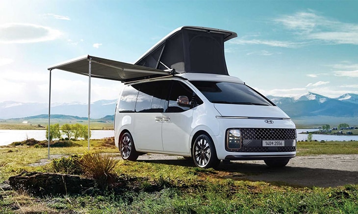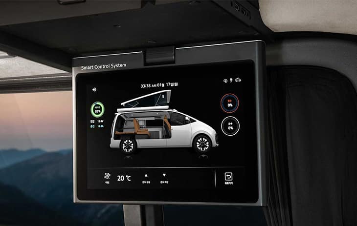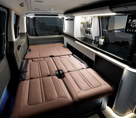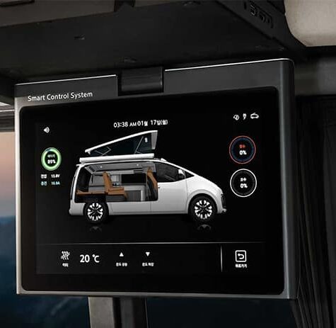 Met zijn elektrische hefdak heeft de Hyundai Staria Lounge Camper helemaal een camperlook. In dit dak een bed voor twee personen. Ook is dit een prima extra verdieping voor wie even enigszins alleen wil zijn. Opladen van mobiele apparatuur is hier geen probleem dankzij de usb-poorten, die overigens ook in de rest van deze futuristische kampeerbus zijn te vinden. Van de banken onderin zijn ook nog twee slaapplaatsen te maken.