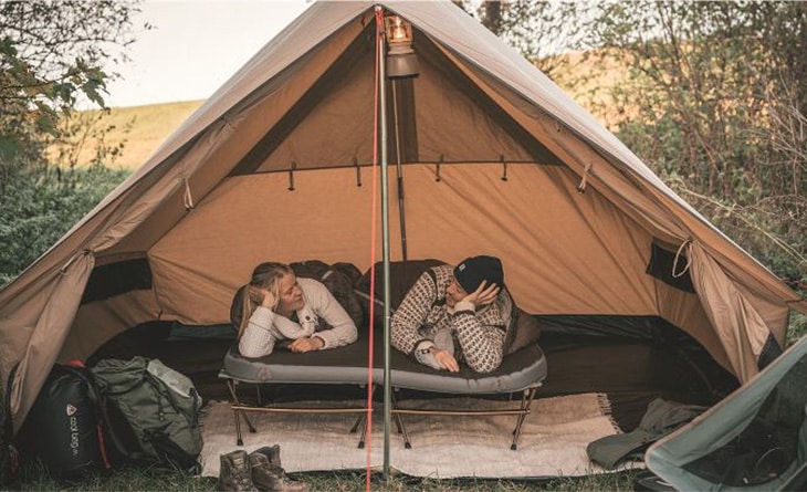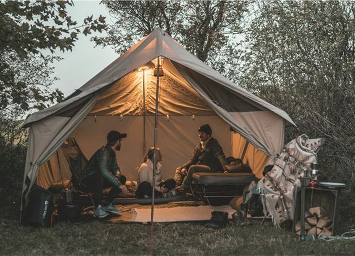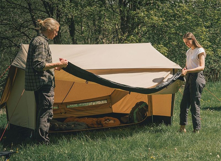 Een van de nieuwelingen is de Robens Yukon Shelter. Scandinavische houten hutten dienden als inspiratie voor deze tent, die slaapplaats biedt aan vier personen. Opvallend is de grote toegangsdeur, die helemaal op te rollen is. Hierdoor ontstaat een enorme opening die een weids uitzicht biedt. Met de extra tentstokken die op de optielijst staan, is van de deur net zo makkelijk een luifel te maken. De tent heeft een vast grondzeil, meerdere ventilatieopeningen met horrengaas en handige opbergvakken. De Yukon Shelter is 2,85 meter lang, 2,45 meter breed en meet op het hoogste punt 1,70 meter. Lange personen kunnen hier dus niet staan. Het gewicht van de tent is 17,2 kilo. De Robens Yukon Shelter kost 834,95 euro.
