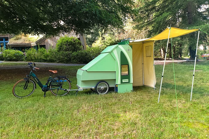 Zogenoemde fietscaravans bestaan al langer, zoals die van Wide Path. Scout voegt daar nu de Scout Stop & Stay aan toe. Compleet met oplooprem. En speciaal voor achter de e-bike.