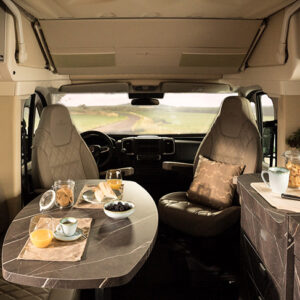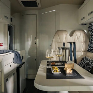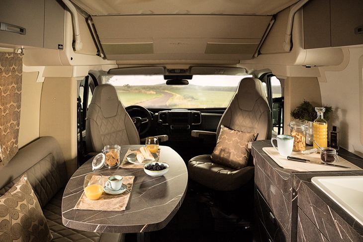 Bij binnenkomst valt direct op dat de Wingamm Oasi 540.1 zeer overzichtelijk is ingedeeld. In het hart van de camper staat een riante L-vormige zithoek waarvan de bank uitkijkt op de keuken. Indien gewenst is hier een eenpersoonsbed van te maken. De ovalen eettafel is in meerdere posities te plaatsen. Met de draaibare cabinestoelen erbij, kunnen er zeker vijf mensen plaatsnemen. De rechte keuken aan de passagierszijde heeft een indrukwekkende afmeting. Hierin zijn verschillende ruime lades en kasten ondergebracht, allemaal met verchroomde push-lock sluitingen. Verder is de keuken uitgerust met een tweepitskookstel, een spoelbak met afdekplaat/snijplank en een koelkast van 96 liter.