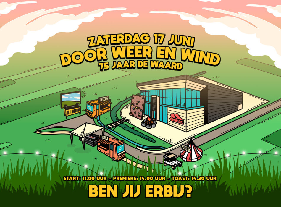 Ter ere van het jubileum heeft De Waard tenten ook een documentaireserie gemaakt: Door weer en wind. Deze uitdrukking slaat natuurlijk op de tenten, maar heeft ook een figuurlijke uitleg. 75 jaar tenten maken gaat immers niet zonder slag of stoot. Door weer en wind gaat over het ontstaan van het bedrijf, de ontwikkeling van de tenten, de groei van het merk, en de drang om te willen blijven ontwikkelen en innoveren. De reeks bestaat uit vijf afleveringen, waarvan er elke week een nieuwe online komt. De eerste twee zijn inmiddels te zien op de website van De Waard tenten. De allerlaatste aflevering gaat in première tijdens het evenement op 17 juni.