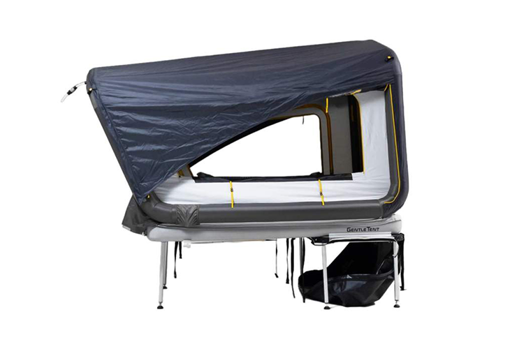 GentleTent kennen we van allerlei soorten (dak)tenten én van die leuke fietscaravan B Turtle. Het merk valt graag op. Zo was het een van de eerste fabrikanten met een opblaasbare daktent. Een paar jaar later claimde GentleTent met de opblaasbare Sky Loft zelfs de grootste daktent ter wereld te hebben.
