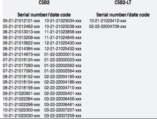 Is jouw camper voorzien van een CSB2- of CSB2-LT-systeem met een van bovenstaande serienummers, neem dan contact op met de dealer. Klik op onderstaande button voor meer informatie over de terugroepactie.