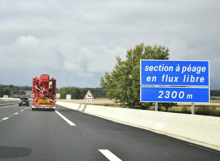 Gelukkig zijn ze helemaal niet zo onzichtbaar, want deze tolwegen zijn duidelijk gemarkeerd met een borden waarop staat: ‘Péage en Flux libre’.