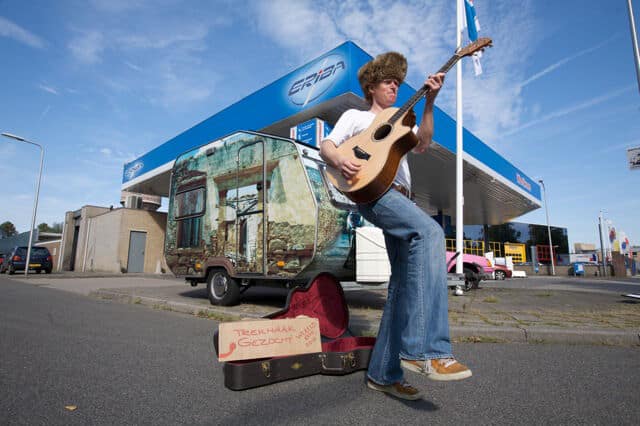 Theatermaker Tjerk Ridder liftte met een caravan, maar zonder auto, van Utrecht naar Istanbul. Geïnspireerd door zijn ervaringen maakte hij de muzikale theatershow ‘Trekhaak gezocht!’. Op de Kampeer en Caravan Jaarbeurs speelde hij een hier een stuk uit. Campingtrend sprak Tjerk na afloop van zijn optreden.