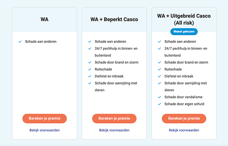 • De verzekering biedt een maximale no-claimkorting van 80%. Daarnaast mag je de no-claimkorting van je auto gebruiken.