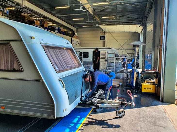 Nou zat er al een fietsendrager op onze dissel. Wat ons betreft is dit sowieso de beste plek voor de e-bikes. Want het is nogal een gewicht om aan de achterwand te hangen. In de caravan of op het autodak – beter voor de gewichtsverdeling – zien we niet zitten. Onhandig en te hoog. Vandaar de keus voor de plek op de dissel. Waarschijnlijk is de fietsendrager die erop zit bij aankoop zo oud als onze Kip caravan zelf, ruim twintig jaar dus. Maar nog erger, hij heeft een draagvermogen van slechts 35 kilo, zo blijkt. Misschien heel logisch voor een fietsendrager uit het pré-elektrischefietsentijdperk. Maar wij durven het niet aan. Onze elektrische fietsen wegen samen 48 kilo. Dat is zonder accu en zonder fietstassen. We willen de e-bikes veilig vervoeren, zonder dichtgeknepen billen of we het spul onderweg niet verliezen.