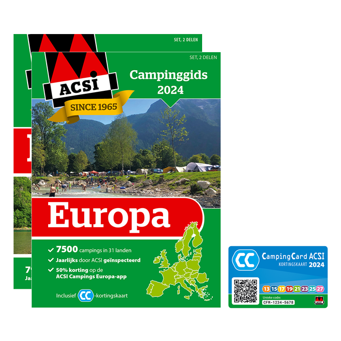 Het uitzoeken van een camping is soms best lastig. Naar welk gebied wil je? Welke faciliteiten moeten er zijn? En hoe zit het met de prijs? In de tweedelige ‘ACSI Campinggids Europa’ vind je informatie over maar liefst 7500 campings in 31 verschillende landen. Dit is dus een van die kampeergidsen die handig zijn tijdens de voorbereiding op je kampeervakantie, maar ook ideaal voor onderweg. Wil je tevens gebruik maken van de ACSI Campings Europa-app? In de gids zit een voucher waarmee je hierop vijftig procent korting krijgt. Op de website van ACSI vind je meer info.