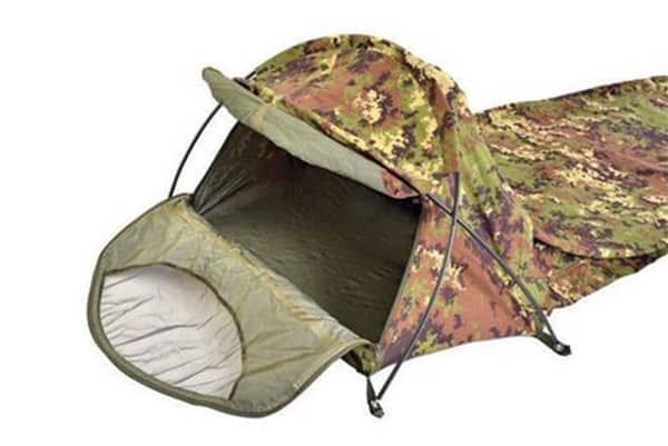 De Defcon 5 Bivi Tent kost 145,50 euro en is onder meer hier te koop. En wie de camouflagekleur Vegetato Italiano toch te opvallend vindt – ja, dat zou zo maar kunnen – kan kiezen voor een groen exemplaar.