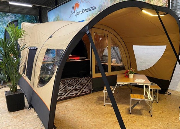 Het grootste model is de Alpenkreuzer CampFIRE (zie ook de hoofdfoto). Hier kunnen maximaal zes personen de nacht in doorbrengen. Vier personen vinden een plaatsje in de twee slaapcabines. Hier liggen twee lattenbodems met matrassen. Even lekker uitstrekken gaat hier prima, want de bedden hebben elk een afmeting van 1,50 x 2,10 meter. De slaapcabines zijn verduisterd, wat zeker op vroege zomerochtenden goed van pas komt. Onder het linkerbed is nog een tweepersoonsslaapcabine te vinden. Opzetten is simpel; de voortent (2,50 x 3,90 meter) vouwt namelijk automatisch uit. Liever geen voortent? Geen probleem! De voortent is namelijk ook af te ritsen. Natuurlijk is deze vouwwagen uit te breiden met een luifel. De Alpenkreuzer CampFIRE is verkrijgbaar vanaf 8.595 euro.