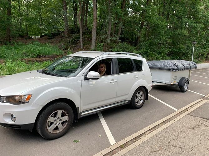In de Campooz slaap je bovenop de trailer. Je moet wel een lenige jongen of meid zijn om daar zonder trapje op te komen. Daarom is elke Campooz uitgerust met een metalen trapje. Voor dat trapje zijn extra brede treden te koop in bamboe (69 euro) of traanplaat (29 euro). Raoul van Campooz verraste ons met een setje bamboe treden.