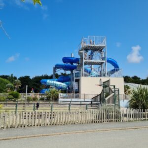 En dan was er natuurlijk het zwembad. Niet te missen, want de glijbanen zijn al van ver zichtbaar. Overdekt, met bochten of stijl naar beneden. Zoveel glijbanen, je zou er bijkans je bikini van verslijten. Net buitenbad met apart pierenbad is leuk aangelegd. Bij minder weer kun je terecht het overdekte en verwarmde zwembad.