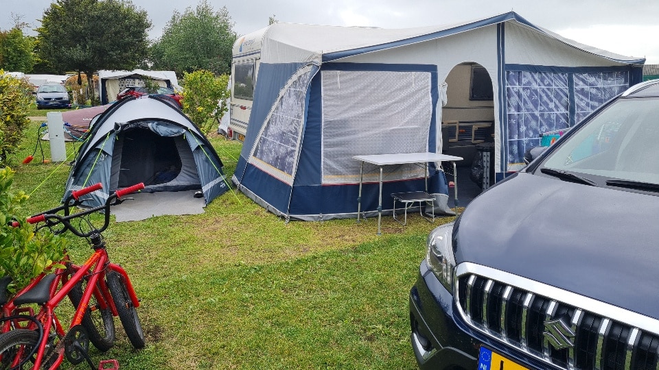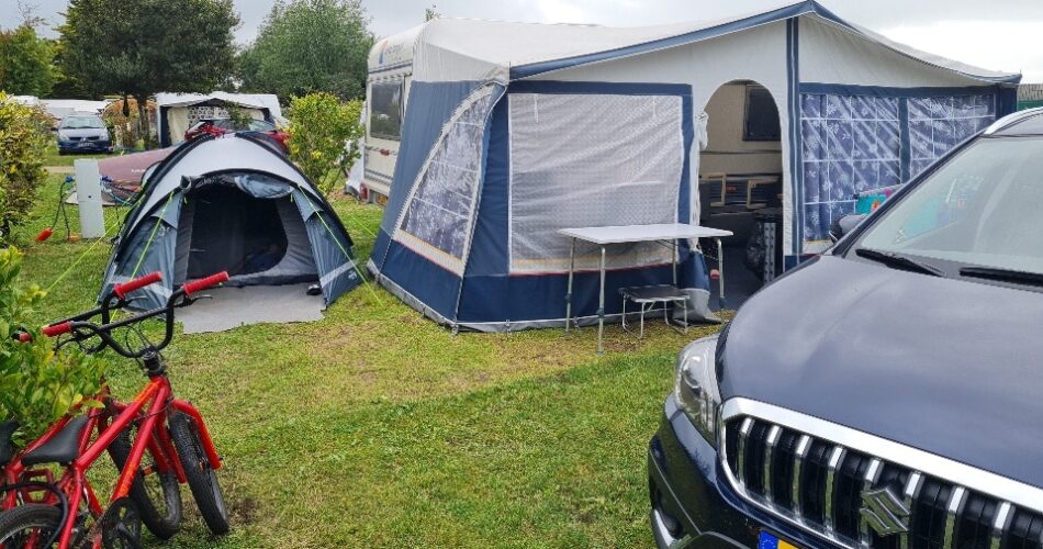 We kwamen van een camping waar we een grote plek en een vrij uitzicht hadden. Ik moest dus even slikken toen we op La Plage een veel kleinere plaats met uitzicht op stacaravans kregen toebedeeld. Maar het reispaleis paste en er was zelfs nog plek voor de auto, dus ik zal niet klagen. Zeker niet omdat de ontvangst bij de receptie hartelijk was, het sanitair schoon bleek en de broodjes de volgende ochtend vers en warm waren.