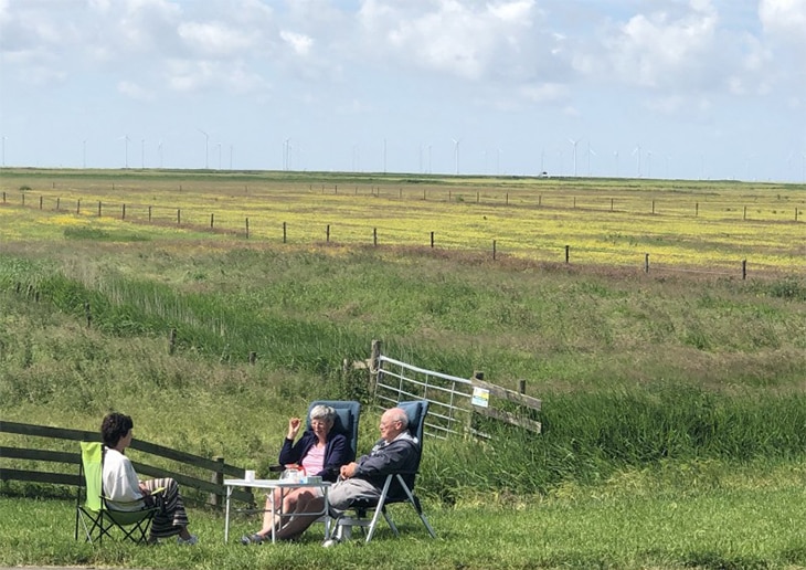 “Eigenlijk was er opvallend weinig verschil. Uiteindelijk is het toch weer een groep met campers en caravans en zodra die ergens neerstrijkt is het We zijn er Bijna!. Omdat we nu in Nederland waren, werden we wel herkend door mensen die al op de campings stonden en die vonden het zo leuk dat we er waren. We hebben ook veel verschillende dingen gedaan en Nederland van een andere kant gezien. Je hoort vaak dat mensen zich in hun eigen woonomgeving niet als toerist gedragen. Dat hebben we nu wel gedaan. En met het weer hadden we ongelooflijke mazzel. Ik denk dat we twee regendagen hebben gehad en voor de rest was het hartstikke mooi weer. De eerste twee weken waren zelfs tropisch, dus de korte broeken zijn uit de koffer gekomen.”