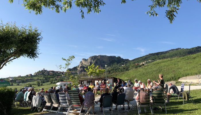 We zijn er Bijna! speelde zich in 2018 af in Italië, in de hak van de laars om precies te zijn. En dat is een behoorlijke tocht van maar liefst vierduizend kilometer. De groep van 44 kampeerders bestond uit twintig echtparen en vier alleenstaanden. Zij startten in de Noord-Italiaanse stad Bologna, in de regio Emilia-Romagna. Vanaf daar trokken ze in vijf weken langs de Adriatische kust naar beneden, om uiteindelijk terecht te komen in Puglia.