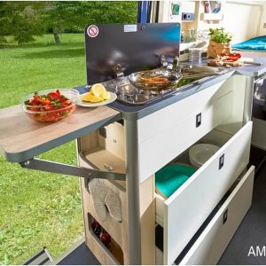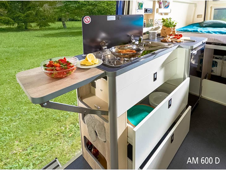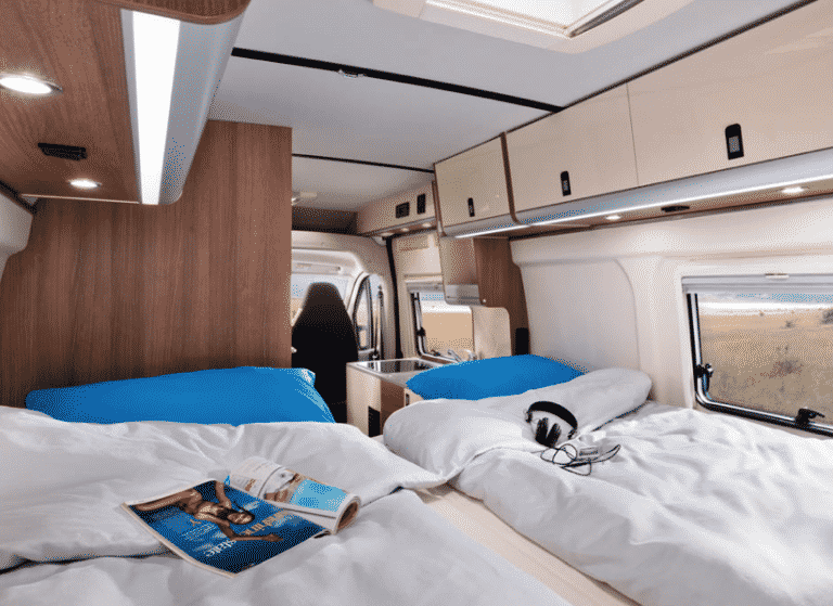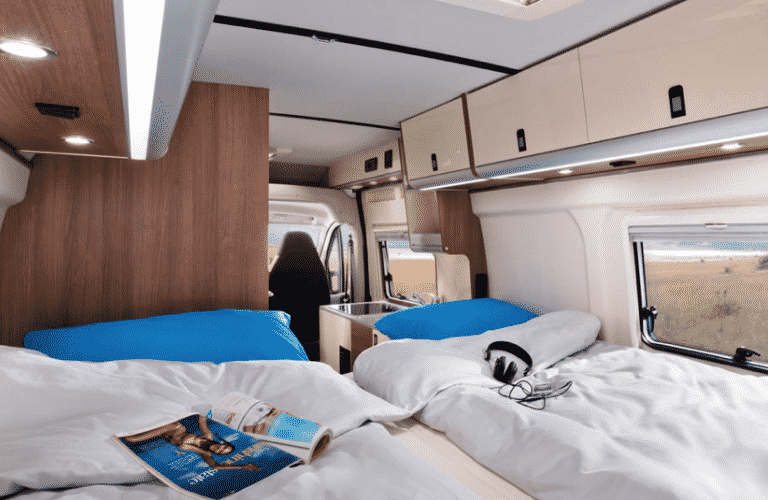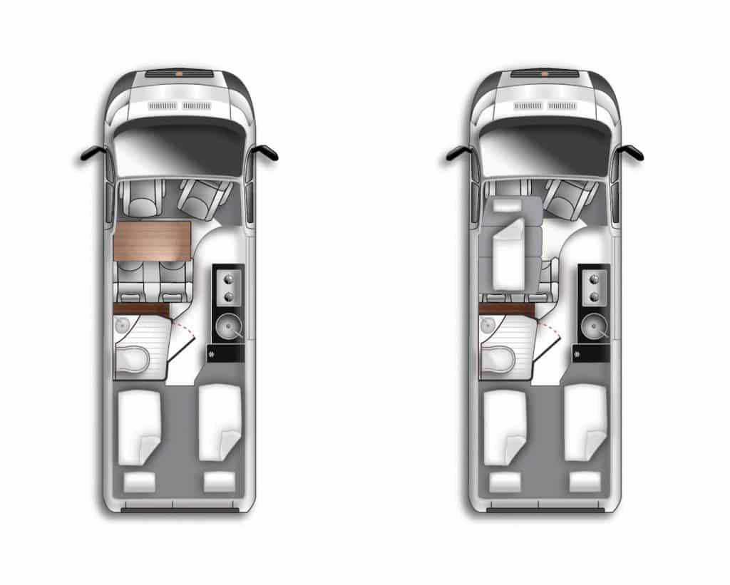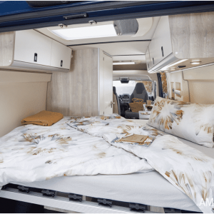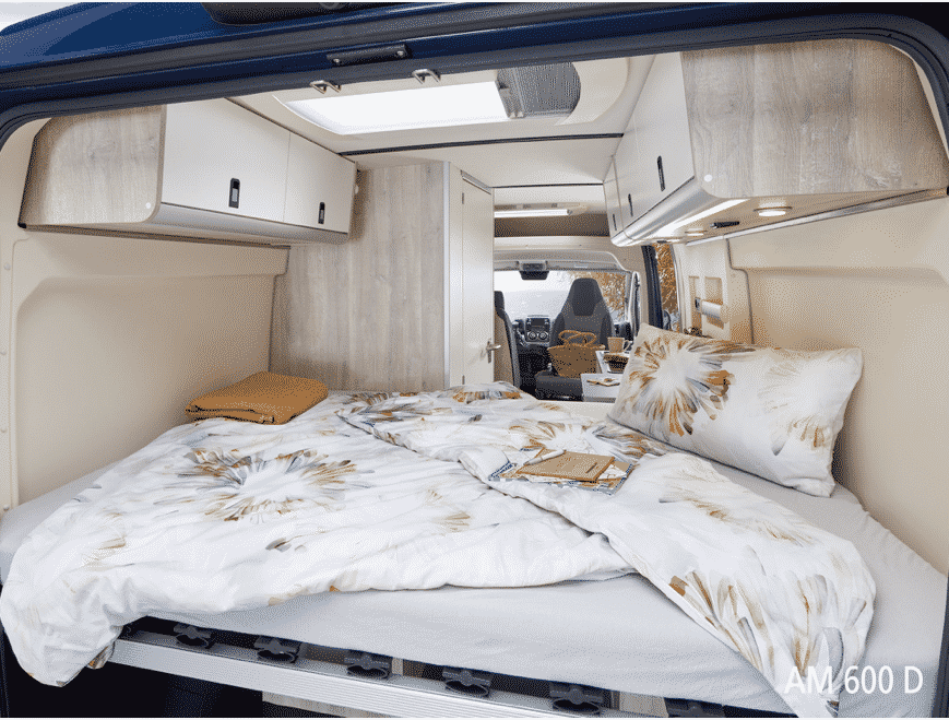 De Westfalia Amundsen buscamper – de instapper van Westfalia – is er in drie lengtematen tot 6,40 meter. Er is keus uit een dwarsgeplaatst tweepersoonsbed of enkele bedden.