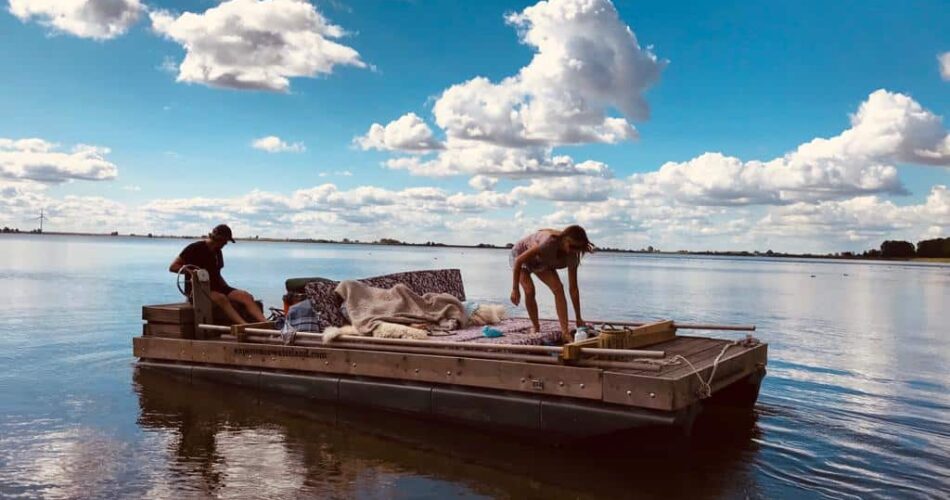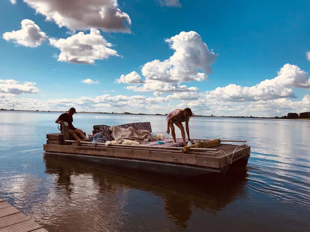 “Ja, wij gaan enkele keren per jaar met het gezin weg. We blijven lekker dichtbij, maar hebben toch het gevoel dat we heel ver weg zijn. We beginnen vaak in februari als het niet te koud is. Het moet minimaal 9 graden zijn, dan is het goed te doen. Je ligt immers niet op een koude grond op een camping, maar lekker warm op het vlot.”