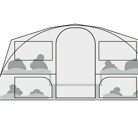 Het groot aantal slaapplaatsen is het meest opvallend aan de Cabanon Chamonix Deluxe. In het slaapvertrek zijn twee vaste bedden te vinden die elk plaats aan twee personen bieden. Onder elk bed is ook nog eens ruimte voor twee slaapplaatsen. Daarvoor geldt wel dat je zelf een matje of luchtbed moet neerleggen. De vaste bedden hebben een royale afmeting van 2,10 x 1,68 meter en zijn voorzien van een lattenbodem met daarop een schuimrubberen matras. De slaapruimte is verduisterd.
